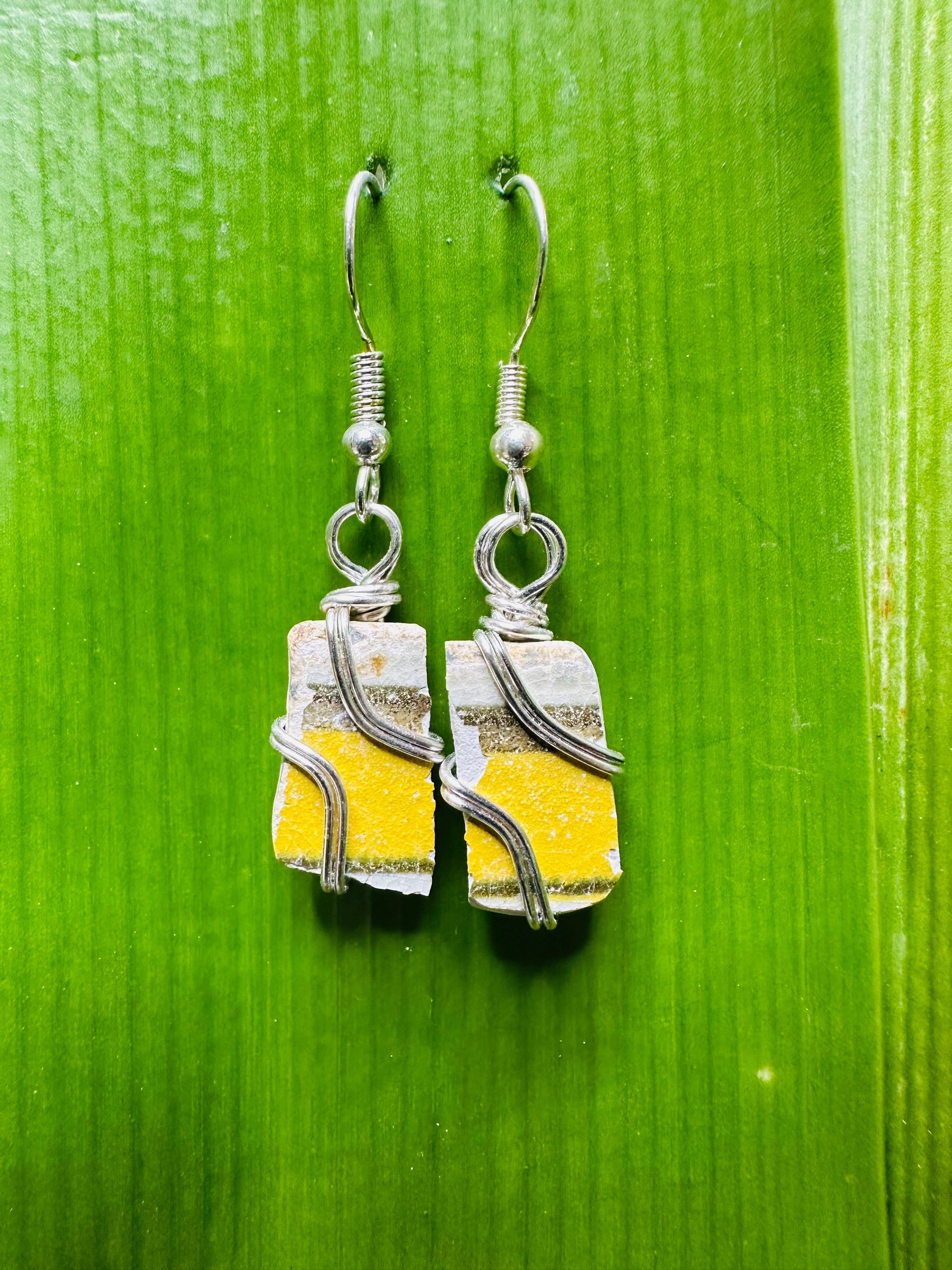 Yellow and Brown Chaney Earrings wire wrapped in Silver Artistic Wire.