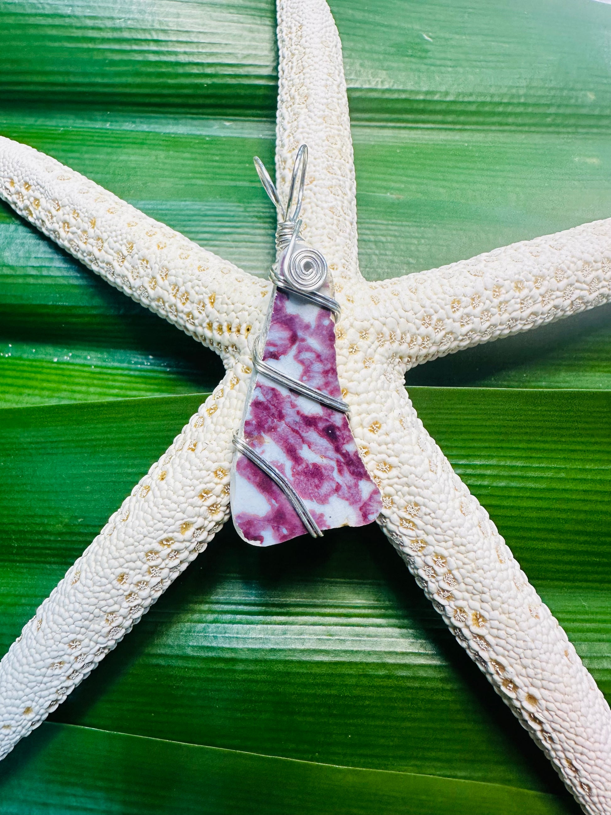 Purple Chaney Pendant wire wrapped in Silver Artistic Wire. Pendant measures approximately 1-3/4” x 1”. 18" adjustable black cord included.
