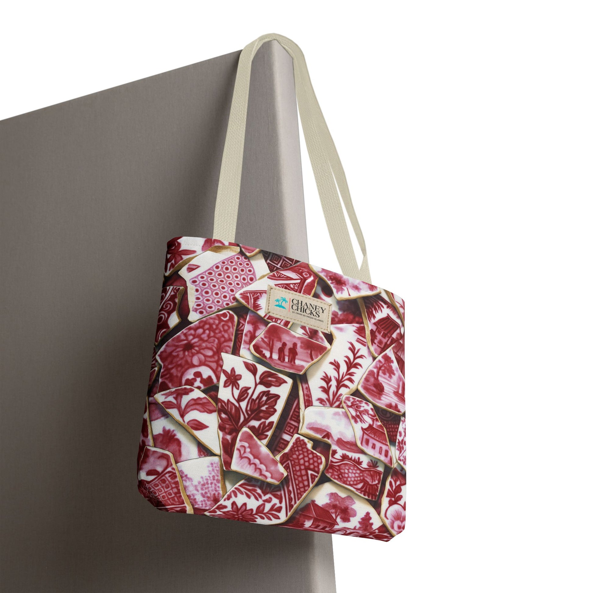This roomy tote brings warm, collected charm to everyday carry. Printed all-over with a collage of rare red Island Chaney. The medium-weight polyester body holds its shape while drying fast after a rainy commute. Boxed corners and reinforced handle stitching give the bag structure and confidence to hold groceries, books or market finds. Choose a size that matches your needs. It feels like something found on a long, happy afternoon of Chaney hunting on St. Croix—familiar, handcrafted, and quietly elegant.