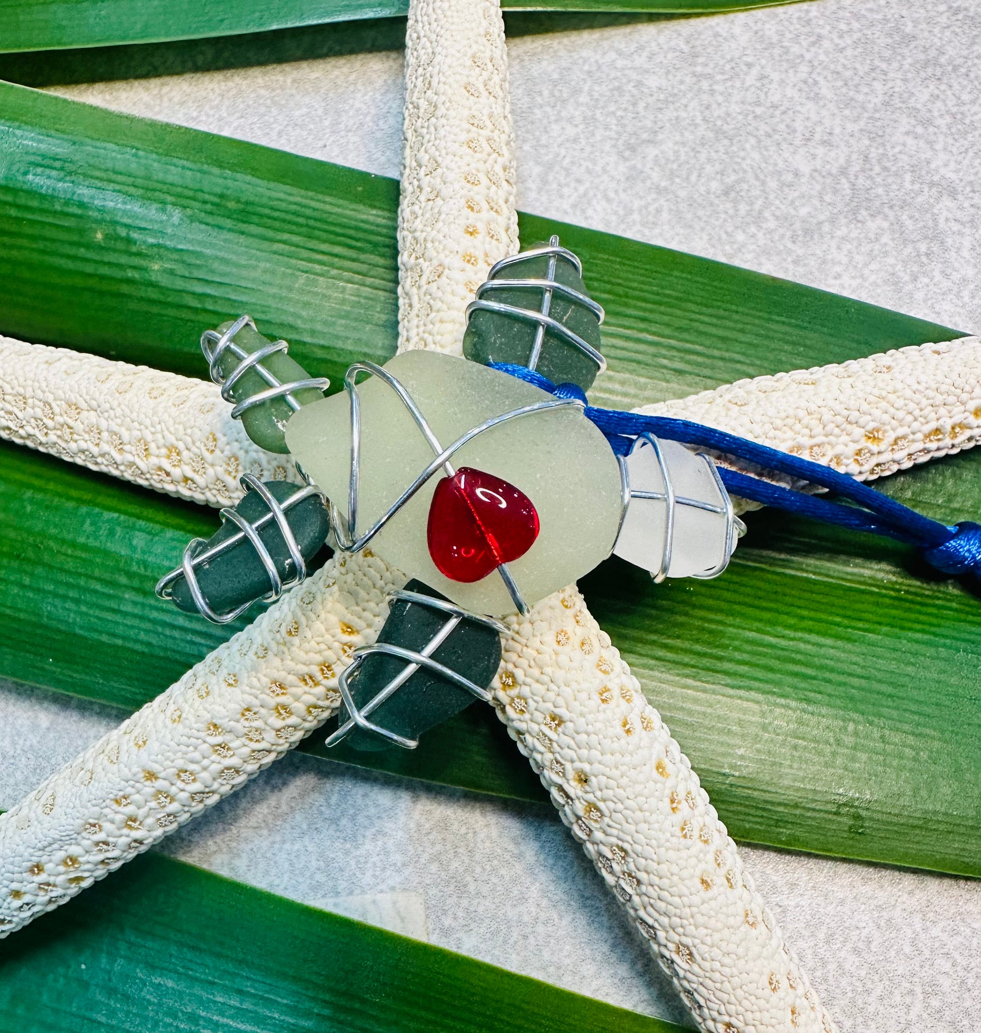 Handmade wire wrapped Sea Glass Sea Turtle Ornament made with authentic St Croix Sea Glass!