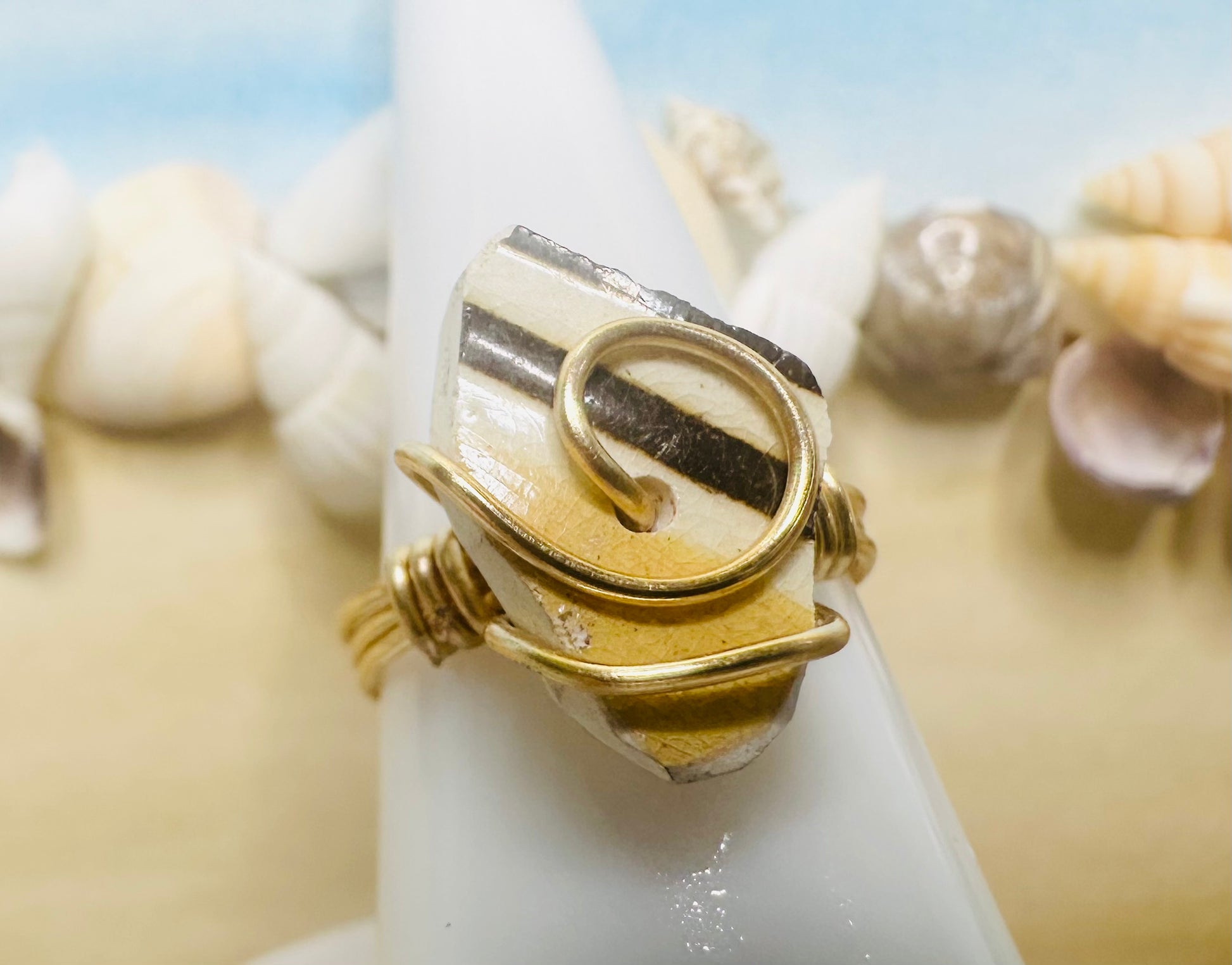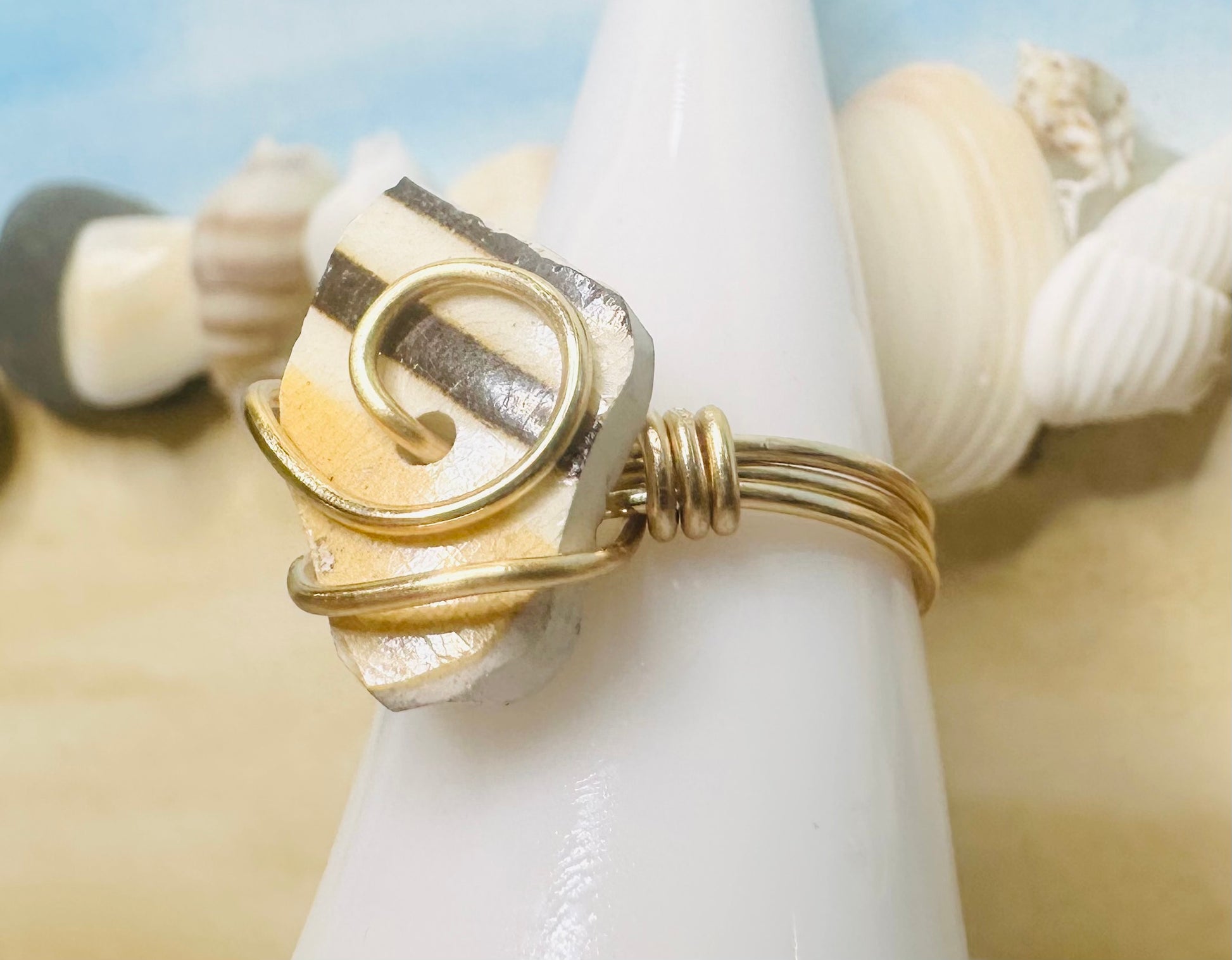 Dark and Light Brown Chaney Ring wire wrapped in Gold Artistic Wire, Size 7.