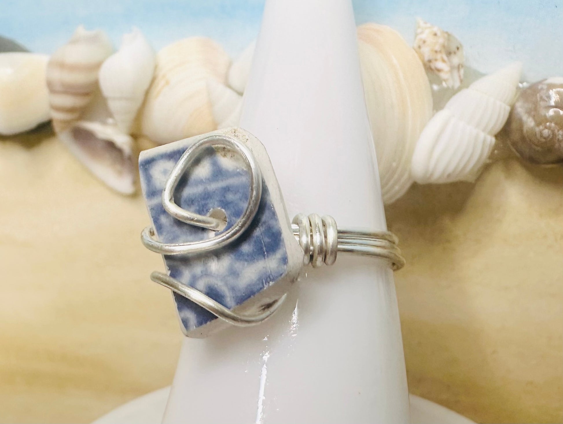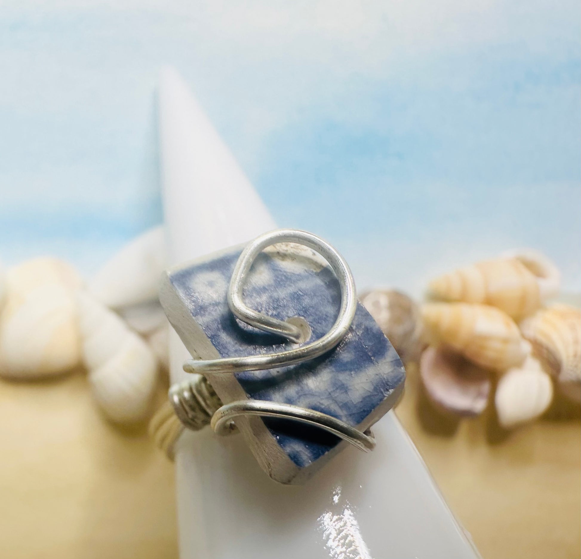 Blue Chaney Ring wire wrapped in Silver Artistic Wire, Size 6.