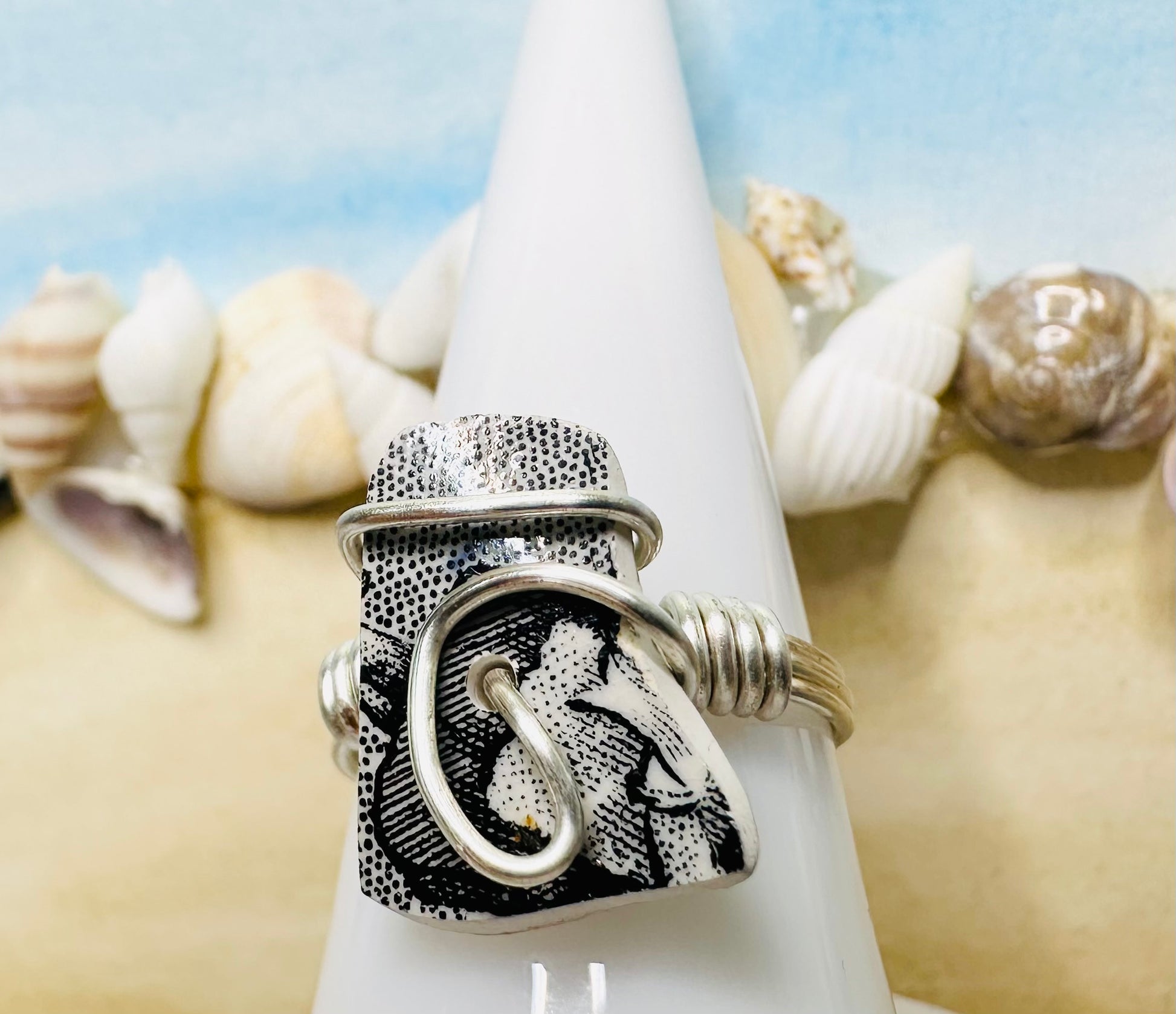 Black Chaney Ring wire wrapped in Silver Artistic Wire, Size 7.