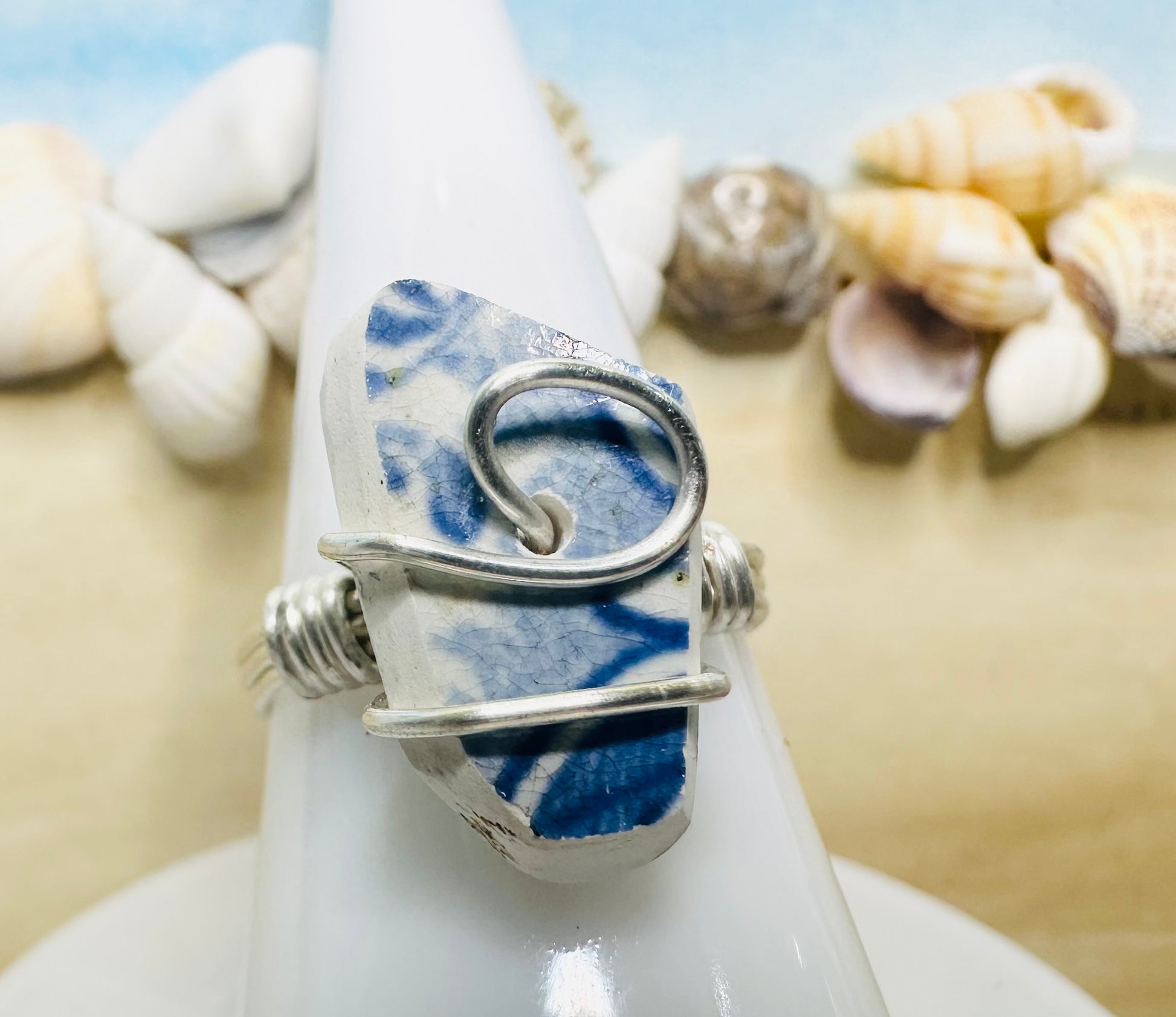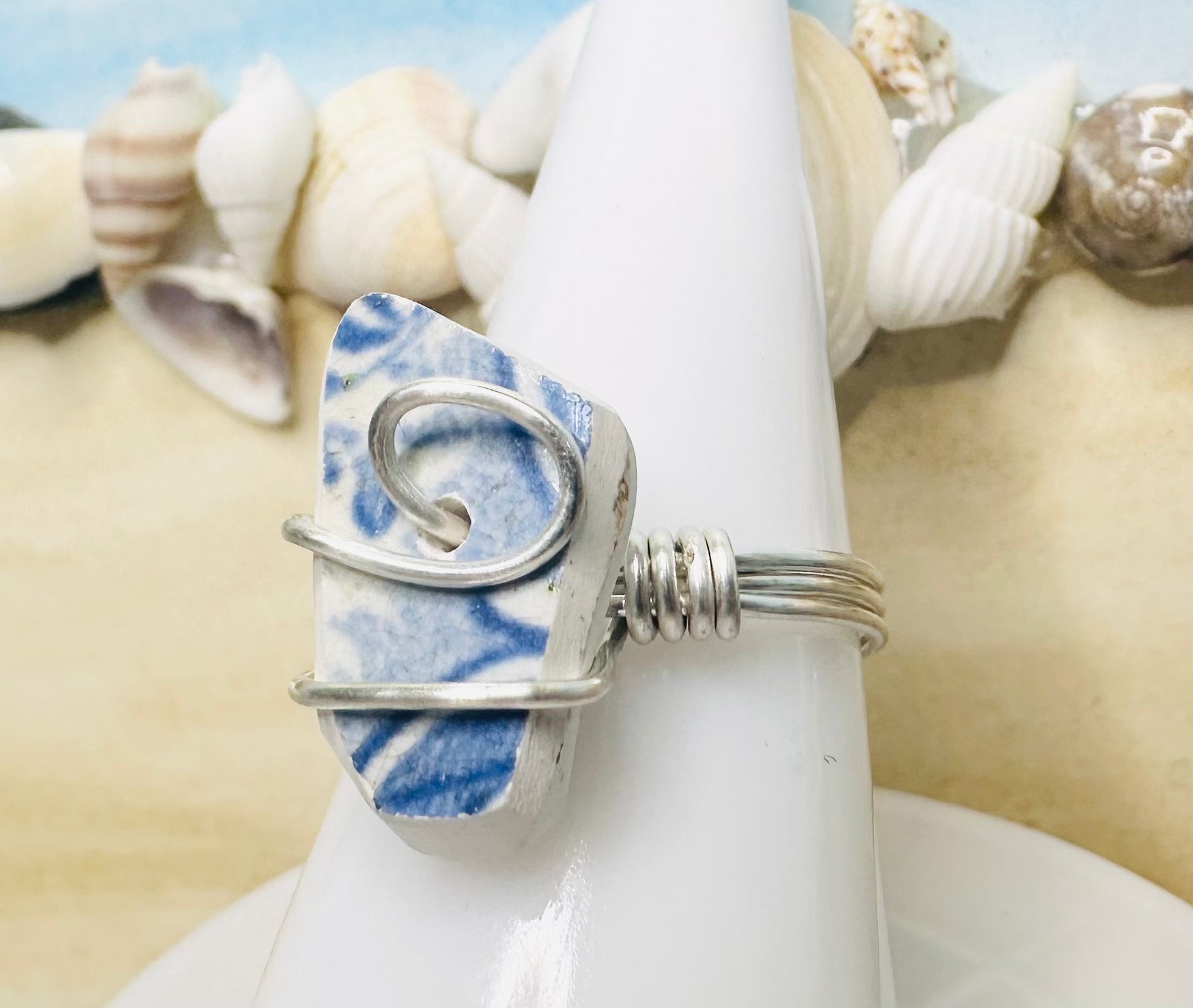 Blue Chaney Ring wire wrapped in Silver Artistic Wire, Size 8.