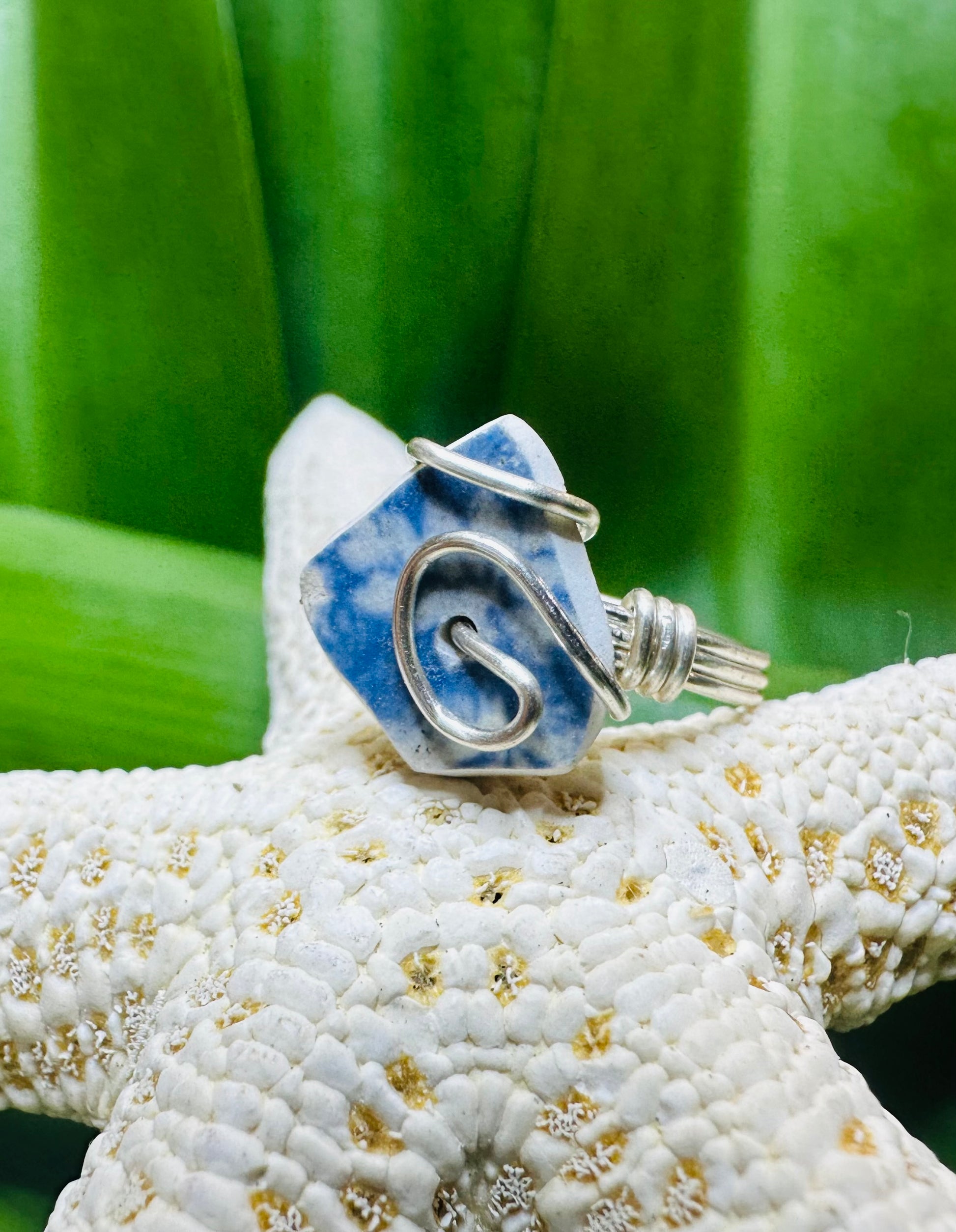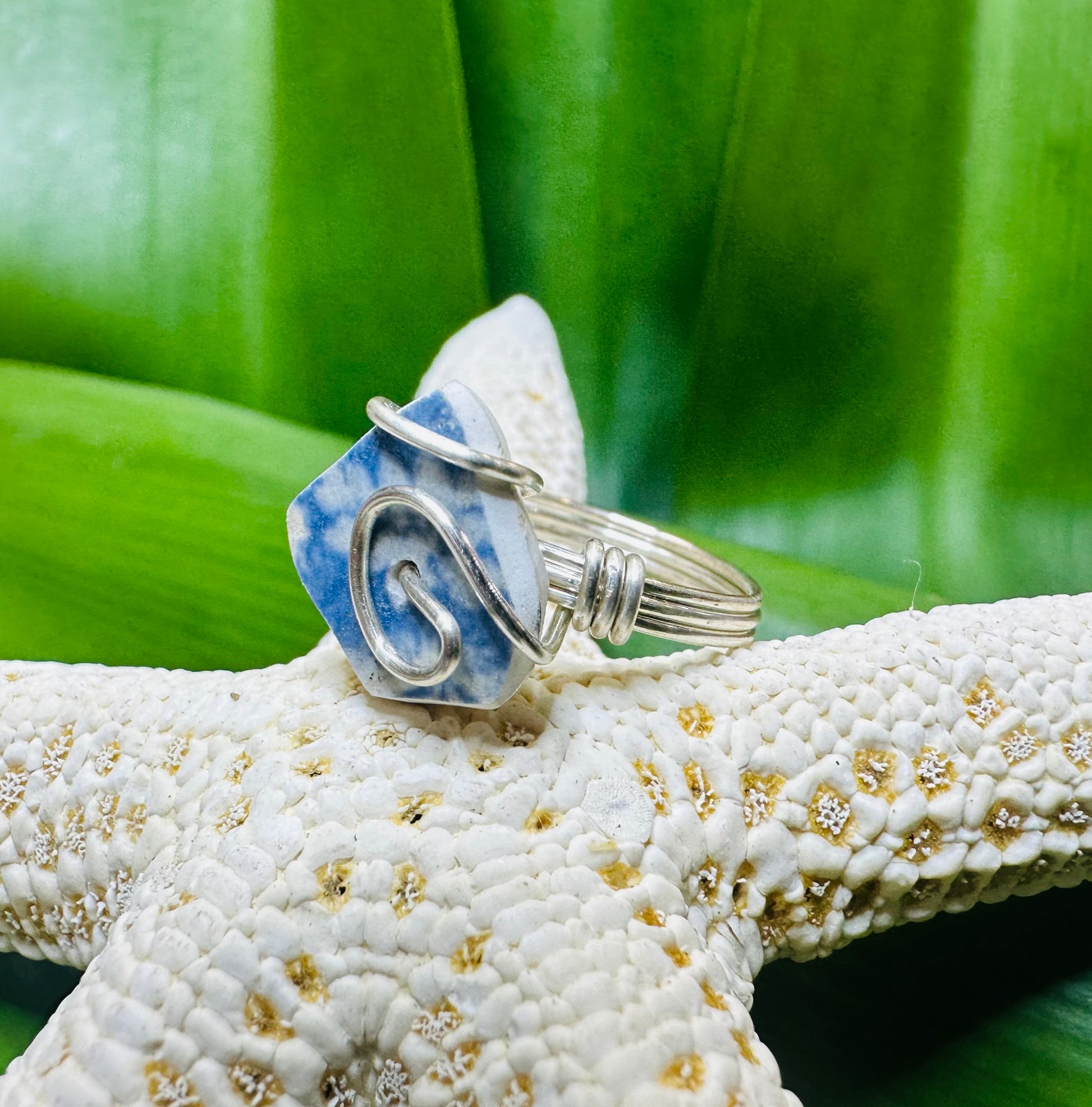 Blue Chaney Ring wire wrapped in Silver Artistic Wire, Size 6.